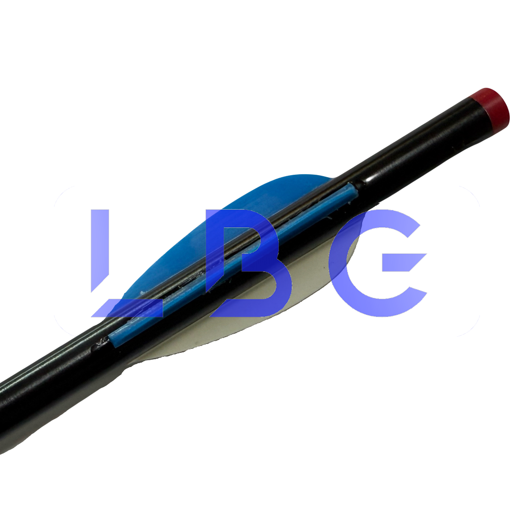 Flèche eclipse Standard montée avec pointe, talon et plumes Tube 1714 + 2 plumes F2 bleu + 1 plume F2 blanc Flèche polyvalente pour le tir en intérieur et/ou extérieur
