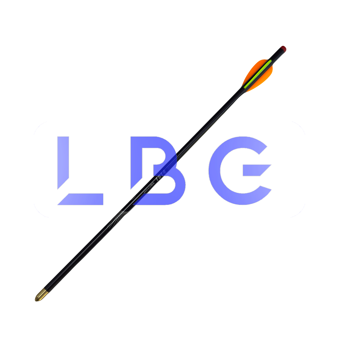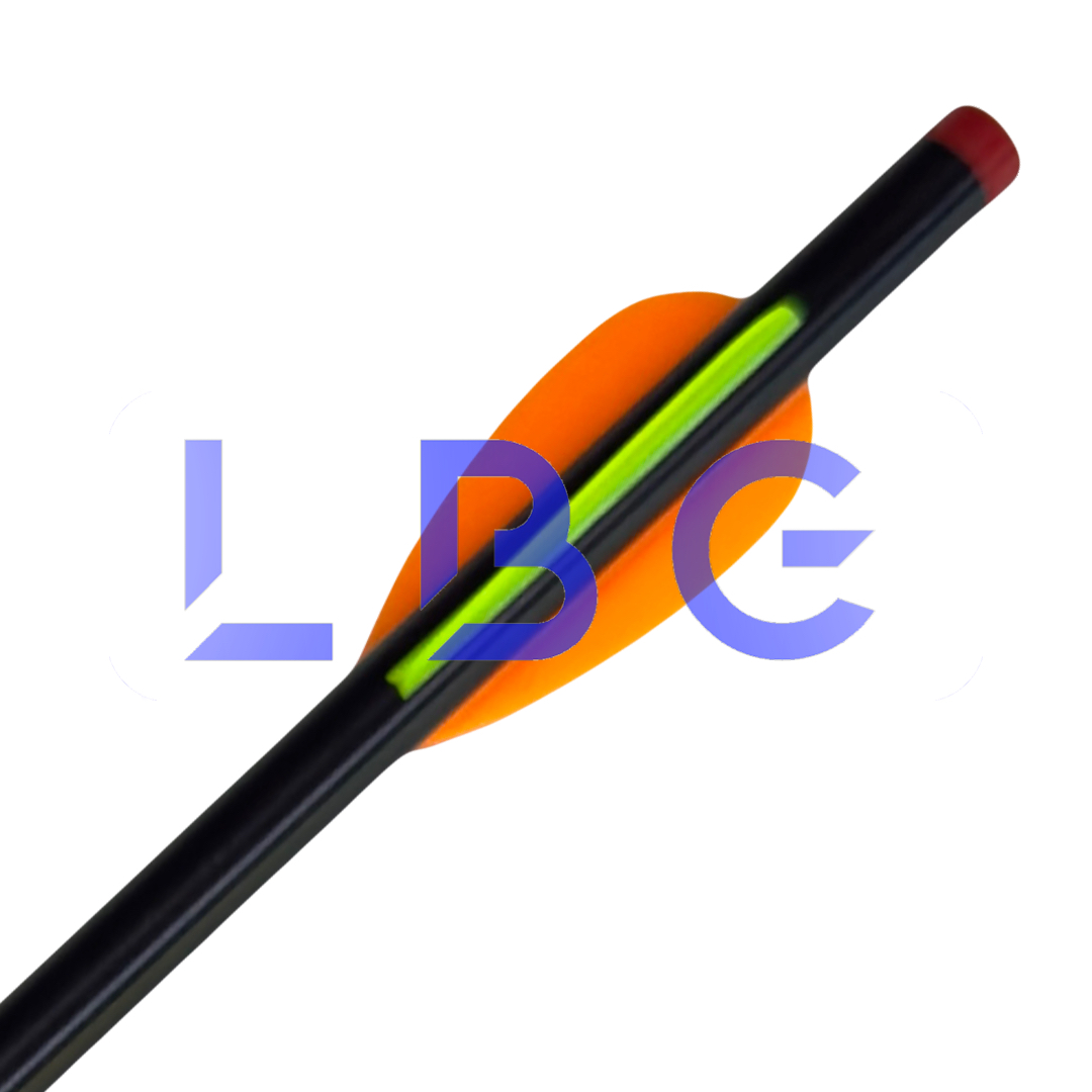 Flèche eclipse Standard montée avec pointe, talon et plumes Tube 1814 + 2 plumes F2 orange + 1 plume F2 vert fluo Idéal pour le tir en extérieur