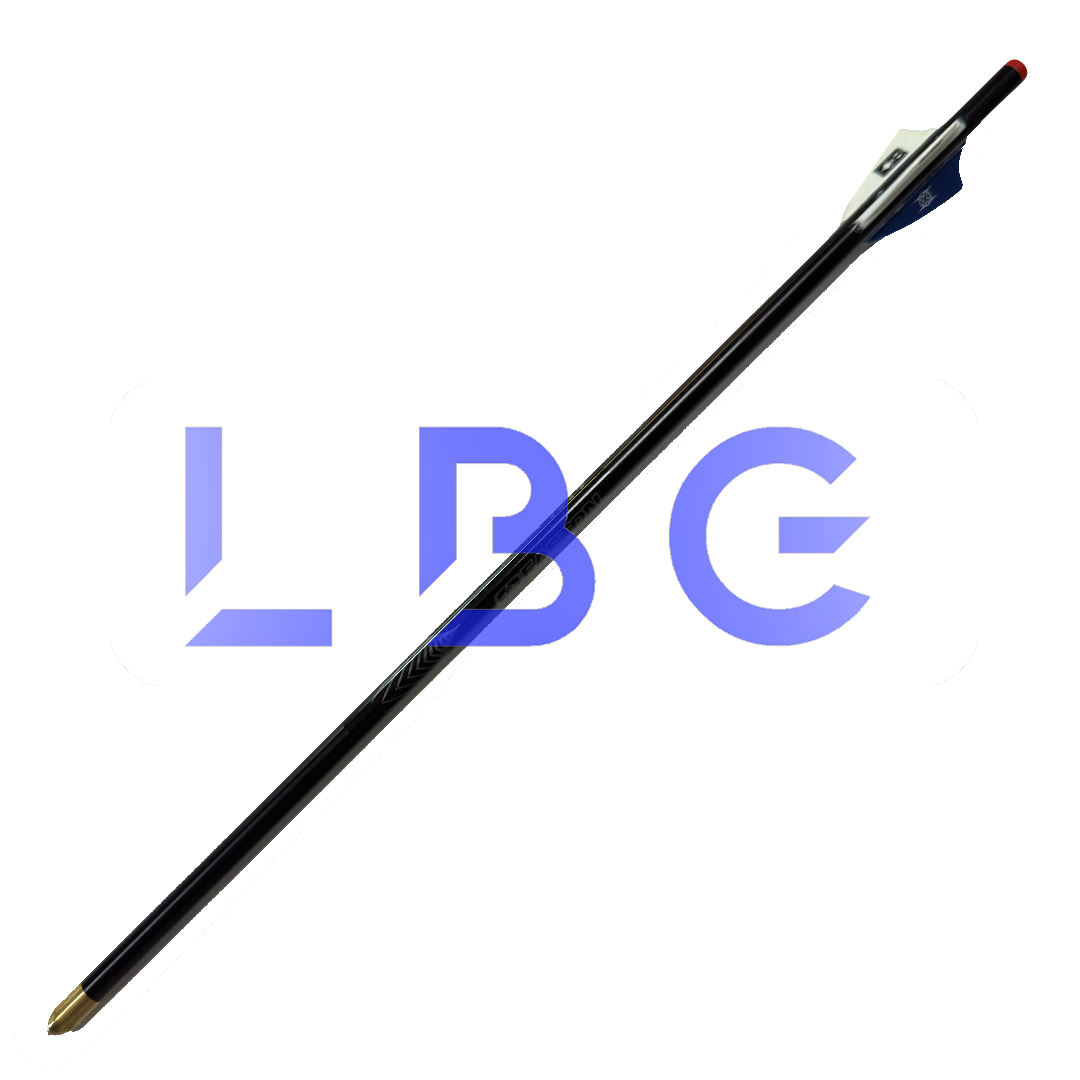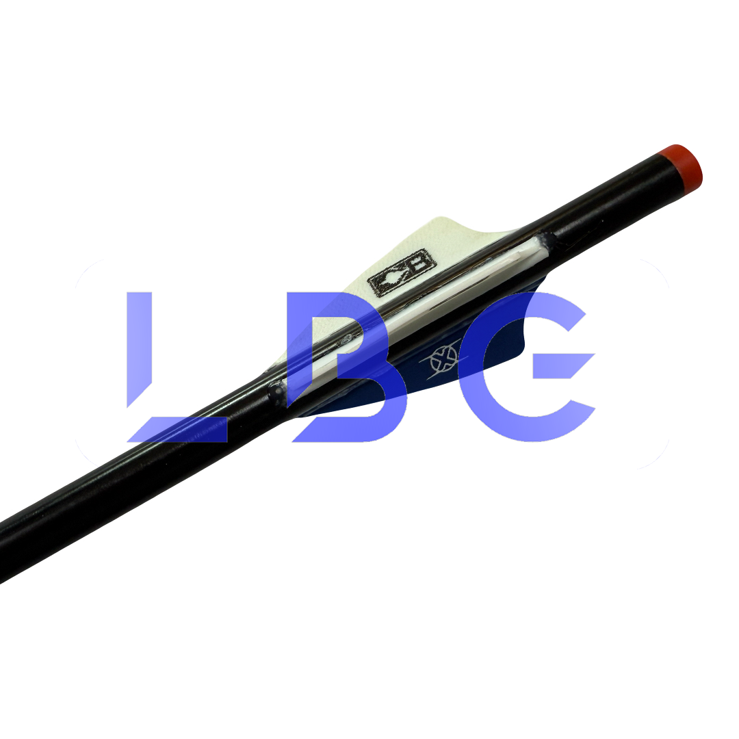 Flèche eclipse Standard montée avec pointe, talon et plumes Tube 1814 + 2 plumes F4 blanc + 1 plume F4 bleu Idéal pour le tir en intérieur