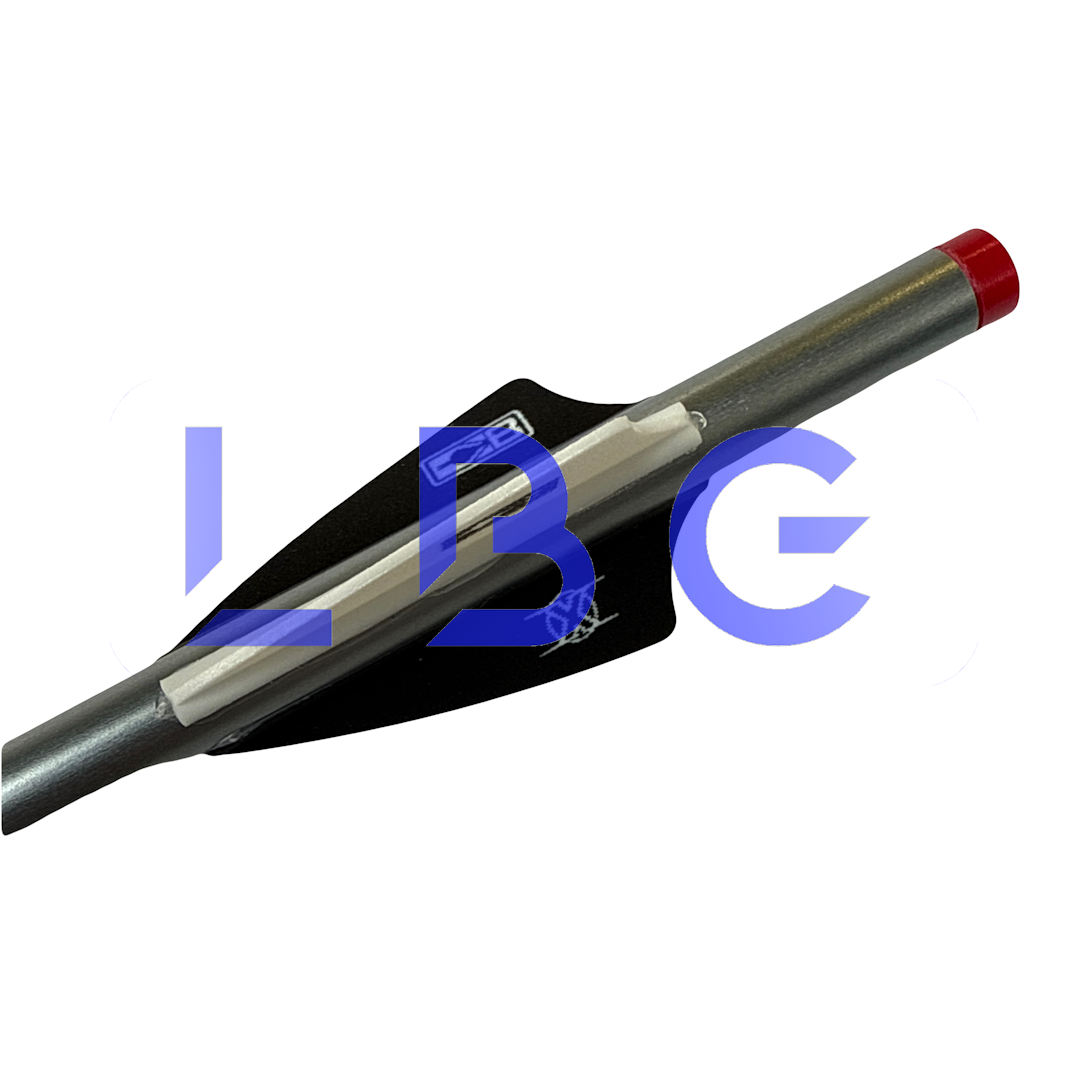 Flèche platinium Standard montée avec pointe, talon et plumes Tube 1716 + 2 plumes F4 noir + 1 plume F4 blanc Idéal pour le tir en intérieur Flèches incluses dans nos packs arbalète