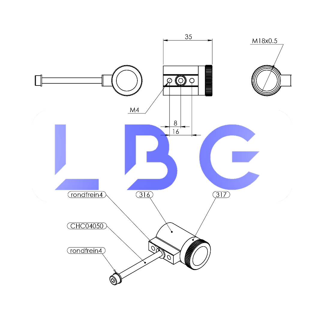 Tunnel LBG avec son ecrou Type M18, compatibilté carabine Fourni avec vis M4 pour tête renforcée V105